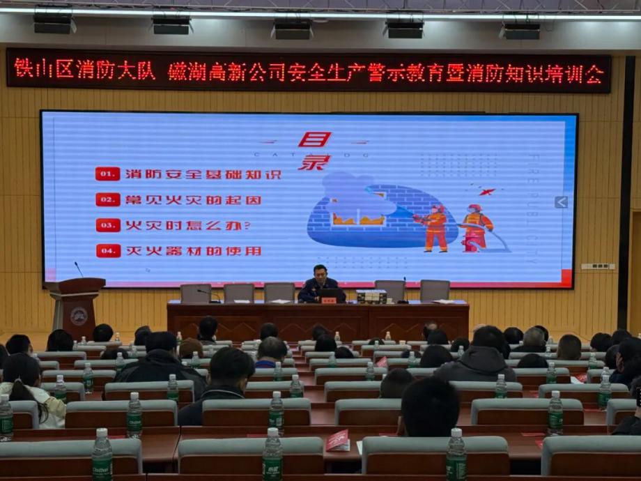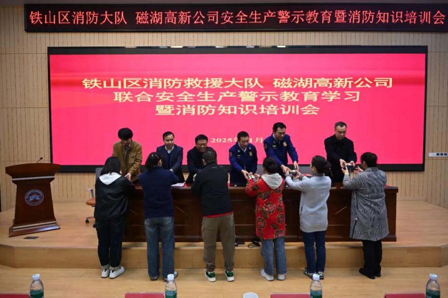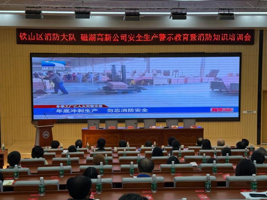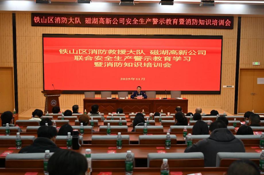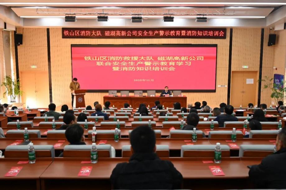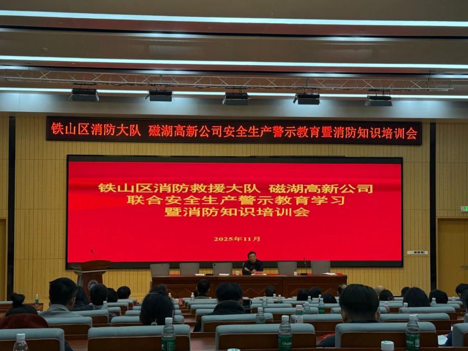 為深刻汲取近期火災(zāi)事故教訓(xùn),全面壓實(shí)安全生產(chǎn)責(zé)任,切實(shí)提升園區(qū)整體消防安全管理水平,營(yíng)造“119消防宣傳月”濃厚氛圍,鐵山區(qū)消防救援大隊(duì)與磁湖高新公司于11月19日聯(lián)合舉辦安全生產(chǎn)警示教育學(xué)習(xí)暨消防知識(shí)培訓(xùn)會(huì)。會(huì)議聚焦“全民消防、生命至上——安全用火用電”主題,通過(guò)文件學(xué)習(xí)、警示教育、專(zhuān)業(yè)培訓(xùn)、責(zé)任落實(shí)與設(shè)備保障等多措并舉,為企業(yè)安全生產(chǎn)與商戶(hù)安全經(jīng)營(yíng)注入強(qiáng)心劑。區(qū)消防救援大隊(duì)黨委書(shū)記徐耀,磁湖高新公司黨委副書(shū)記、總經(jīng)理蔡華中出席會(huì)議并講話(huà),園區(qū)企業(yè)安全負(fù)責(zé)人、商業(yè)門(mén)面承租戶(hù)代表等150余人參加會(huì)議。