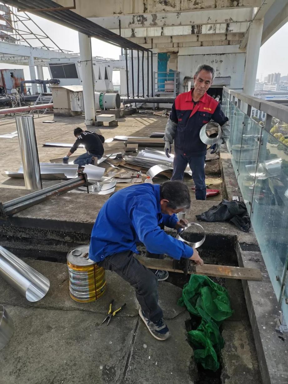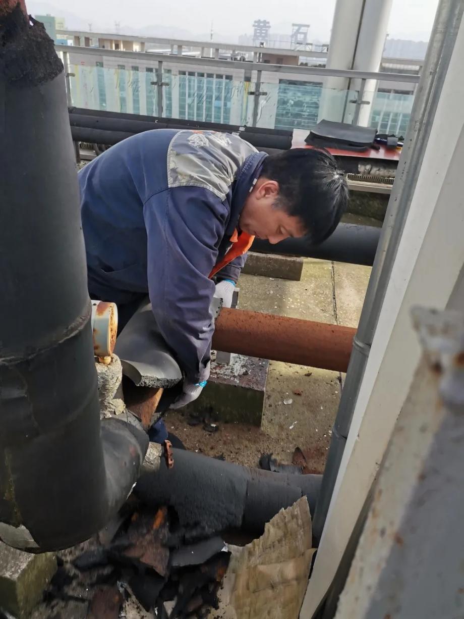 為此,高新物業(yè)公司認(rèn)真貫徹落實《綠色高效制冷行動方案》,及時維修、更換該樓中央空調(diào)循環(huán)水管保溫棉外露面,并加裝鋁制金屬保護殼,在節(jié)約能耗的同時,還能有效避免凝水滲漏。