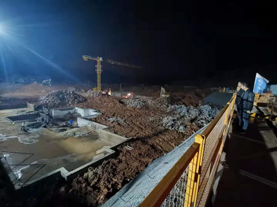 4月11日晚8點(diǎn),華新小鎮(zhèn)項(xiàng)目現(xiàn)場機(jī)械轟鳴、人聲鼎沸,工地上下盡是忙碌的身影。