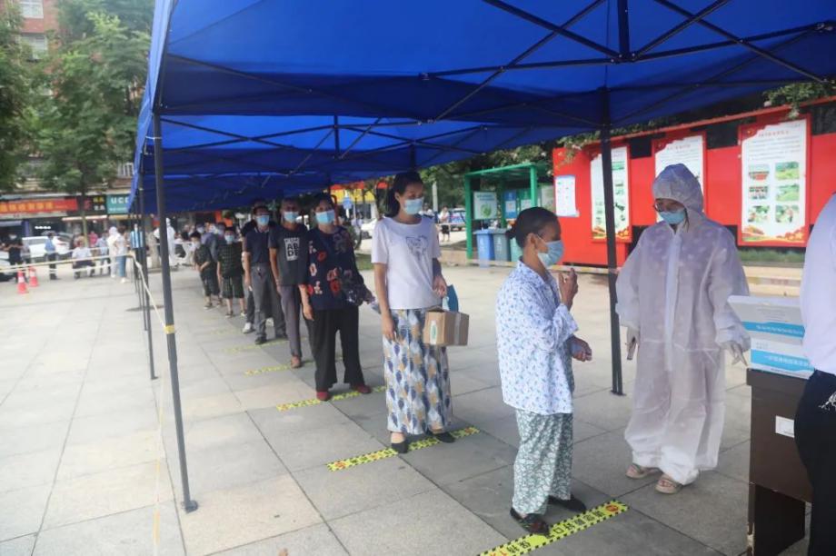 上午8時許,社區(qū)廣場各工作環(huán)節(jié)部署嚴密,現(xiàn)場秩序井然。50余名下沉黨員和志愿者引導(dǎo)居民有序進行測溫、排隊、登記、采樣,參與活動的群眾積極配合,現(xiàn)場工作人員操作規(guī)范,演練活動達到了預(yù)期效果。